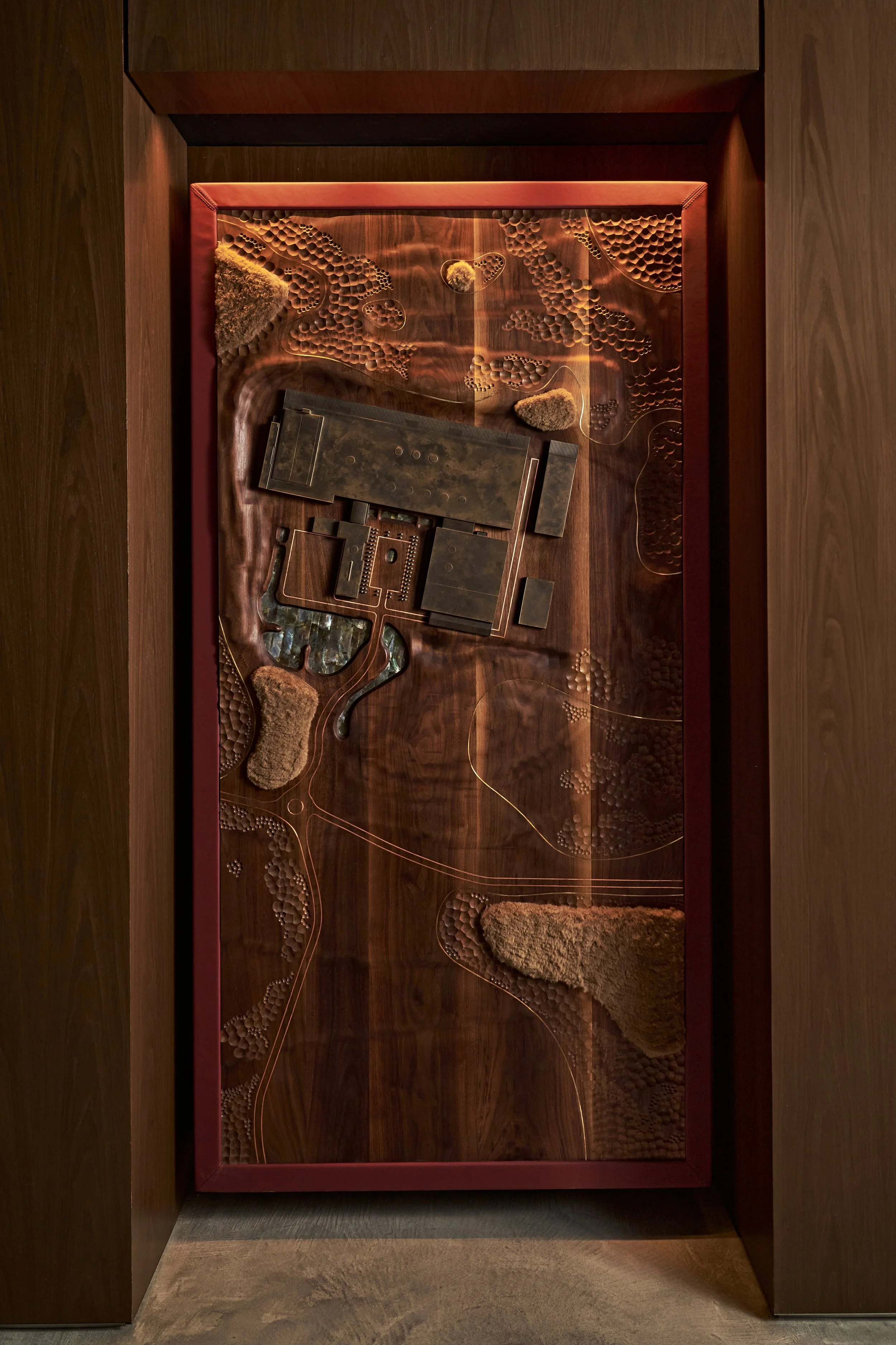I often work closely with artists and makers to create bespoke pieces, from joinery and lighting to one-off installations. For the New York Atelier, I commissioned a sculptural artwork by Chris Wood that celebrated the 90 pairs of hands behind each Rolls-Royce. In another, I collaborated with Rolls-Royce to produce a model of the factory made from off-cut materials from the production line, turning waste into a story of place and process.